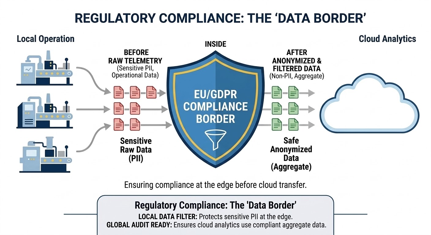 It also supports data minimization, so sensitive operational telemetry and process signatures can remain on-site with minimal exposure when data crosses organizational boundaries. This aligns with the European Union's industrial data governance and portability initiatives. For instance, on-site processing allows a valve on a remote pipeline to respond instantly to vibration or pressure alerts. This automatic reaction can immediately stop a small irregularity from causing a major, costly shutdown.