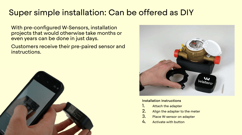 This is where Waltero’s innovative solution comes as a game-changer in the smart metering market as it eliminates a major issue that’s blocking the evolution by providing a W-Sensor that is easy to apply without having to replace the existing metering infrastructure.