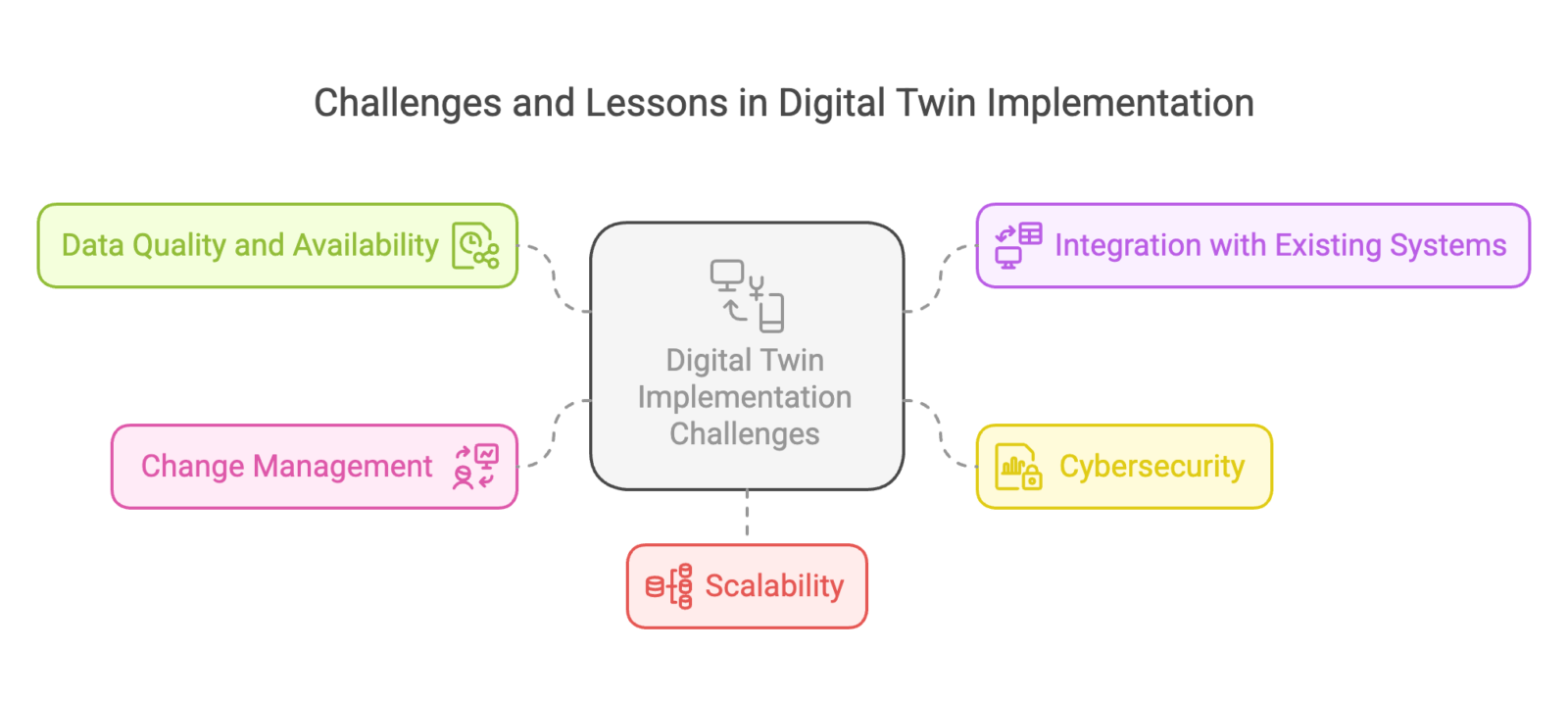 Data Quality and Availability: High-quality, real-time data is essential for digital twins to function effectively. Ensuring data accuracy, completeness, and accessibility is a critical step.