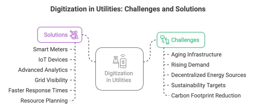 This forms the foundation for digitizing utilities, where technology is used not just to optimize tasks but to reshape how utilities operate, make decisions, and deliver value. Together, they enable smarter, more efficient, and future-ready energy systems.